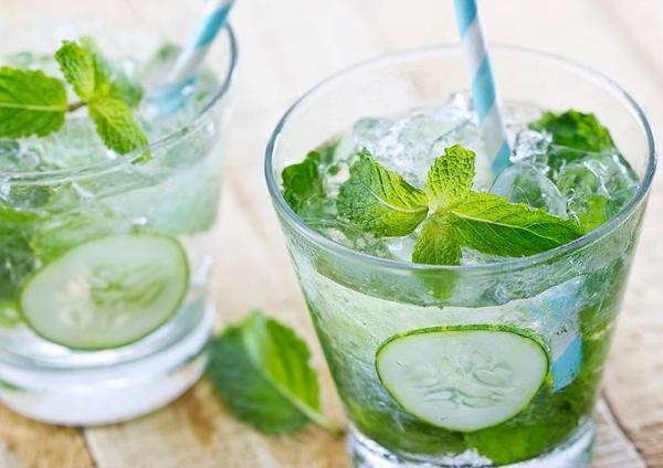 - Огуречный лимонад с мятой: Этот освежающий напиток состоит на 96% из воды и обладает разнообразными полезными свойствами. Один крупный огурец, сок двух лимонов, несколько листиков свежей мяты, один литр холодной воды и немного меда создадут идеальную смесь для прекрасного времяпрепровождения.