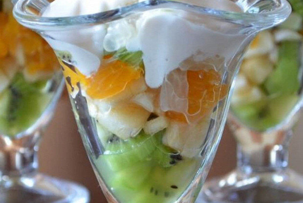 Начать следует с подготовки фруктов: бананы и консервированные персики необходимо нарезать, а затем объединить с целыми ягодами винограда, добавив кусочки киви и апельсинов. Получившаяся смесь будет удивительно ароматной и вкусной.Теперь пора взбить белок. Он должен превратиться в густую пену, после чего добавляется сахар. Продолжайте взбивать до получения устойчивых пиков, а затем аккуратно введите ликер, смешивая еще около двух минут.В качестве финального аккорда залейте полученный крем поверх фруктовой массы и наслаждайтесь фруктовым наслаждением.Этот яркий десерт станет настоящим хитом на любом столе. Не забудьте поделиться рецептом с друзьями в социальных сетях и готовить вместе с «Едой»!