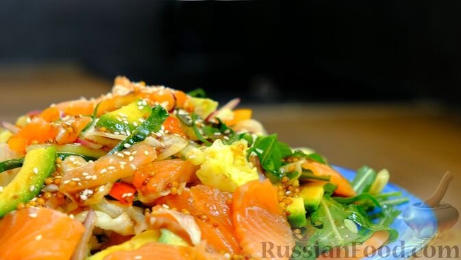 Если планируете новогодний праздник, попробуйте рецепт салата с сёмгой и авокадо, заправленного соевым соусом — это будет настоящая гастрономическая находка для ваших гостей!