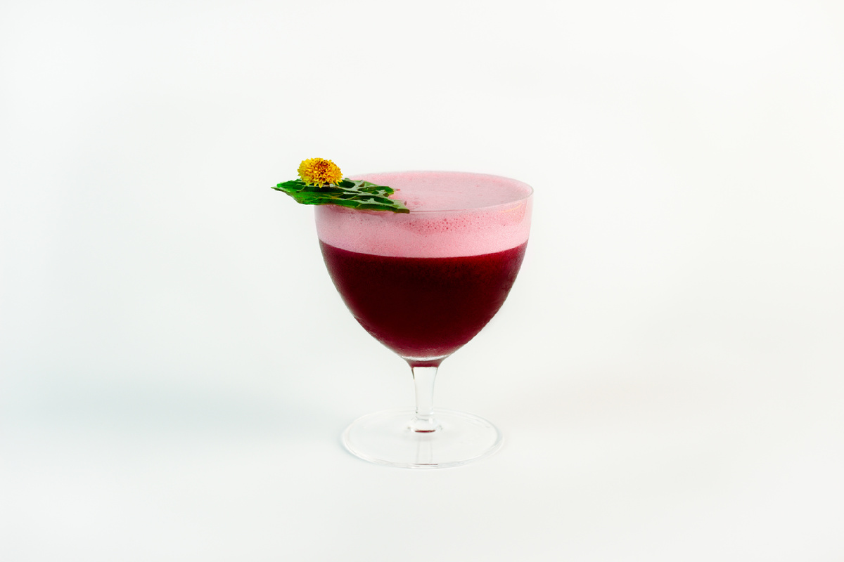 Выход коктейля составляет 180 мл, он подается в специальной посуде Gamma. Для завершения образа рекомендуем использовать гарнир из изомальта и сухоцветов, а также добавить лед в виде одной сферы.