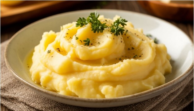 Картофельное пюре с запеченным чесноком и беконом