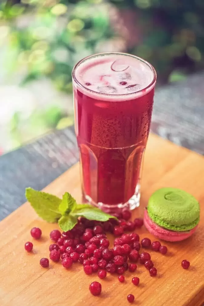 Постепенно влейте клюквенный морс (или замените его на клубничный или ягодный сок), снова перемешивая.