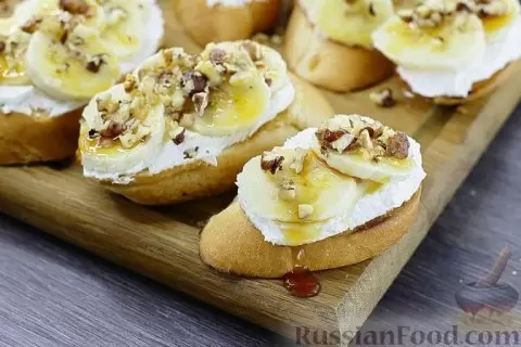 - Бутерброды с сыром и бананом: Нежный творожный сыр прекрасно сочетается с сладостью банана на хрустящем хлебе.