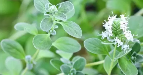 Майоран имеет небольшие овальные листья с серо-зеленым оттенком и нежные цветки, которые могут быть белыми или розовыми. Аромат растения более мягкий и сладкий, чем у орегано, что придает ему уникальность и благородство в кулинарии.