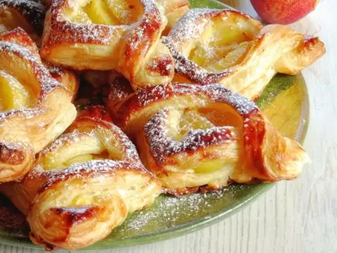 Получившиеся слойки обязательно удивят всех своим вкусом: хрупкая корочка, сочная начинка и сладкий аромат создают идеальное сочетание!