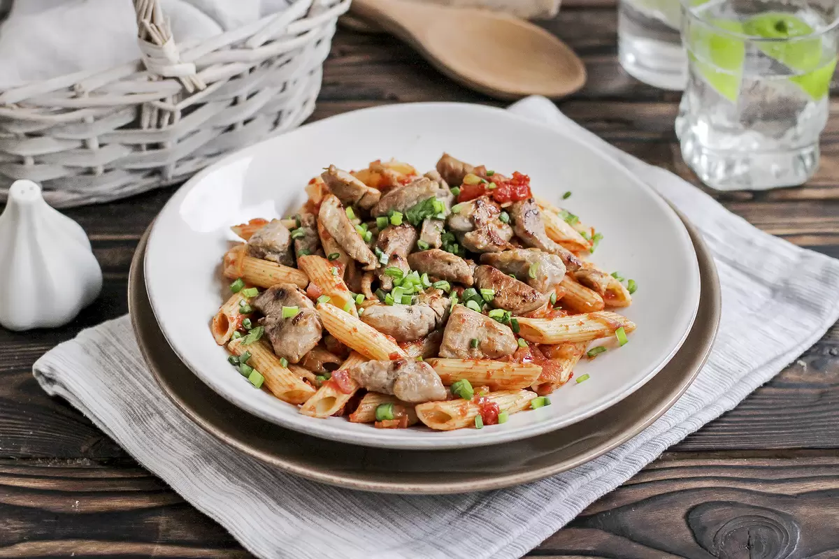Готово! Теперь это восхитительное и ароматное блюдо готово к подаче. Овладейте искусством приготовления пенне со свиной вырезкой и удивите своих близких новым кулинарным шедевром.