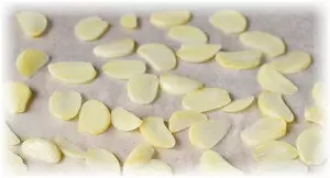 - В духовке: Нарезать чеснок тонкими ломтиками, выложить на противень. Разогреть духовку до 60 градусов и сушить, приоткрыв дверцу, в течение 40 минут, периодически перемешивая. Готовый продукт следует остудить.