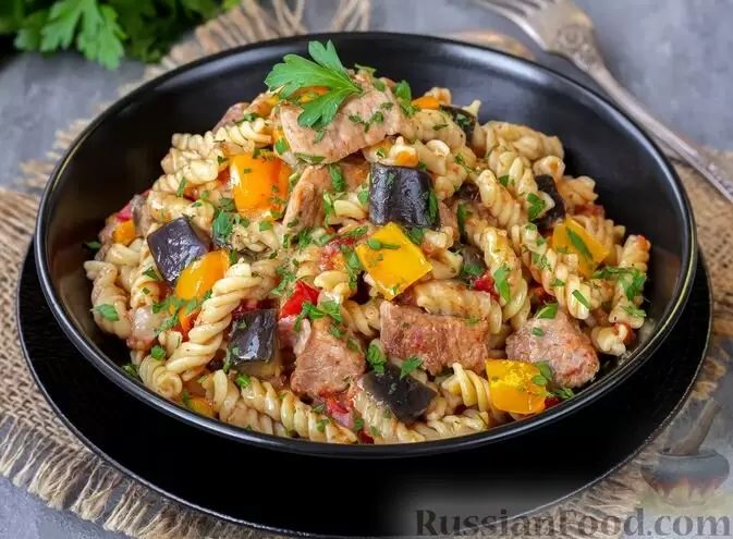 И не забудьте про макароны с мясом, помидорами и баклажанами — всё готовится в одной сковороде, что не только удобно, но и вкусно!