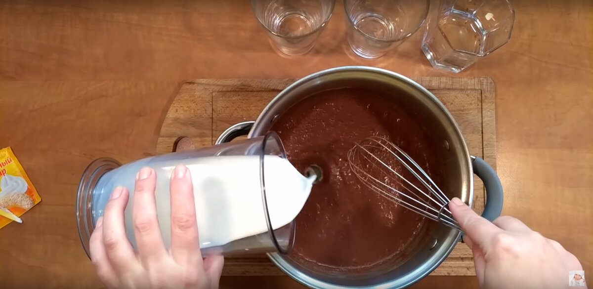 В небольшой кастрюле соедините манную крупу, сахар, какао-порошок и ванильный сахар. Аккуратно влейте молоко, тщательно перемешивая, чтобы избежать комков. Поставьте кастрюлю на небольшой огонь. Постоянно помешивая, доведите массу до загустения. После достижения нужной консистенции продолжайте варить еще некоторое время, чтобы манка не чувствовалась в итоге.