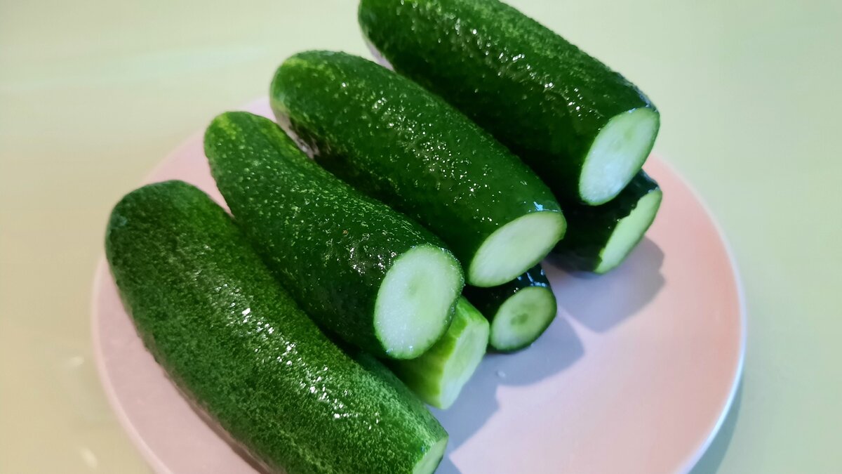Для начала огурцы тщательно промываются в холодной воде. Кончики стоит обрезать чуть больше, чем при традиционном засолении. Это делается для того, чтобы площадь огуречной мякоти увеличилась, что ускорит процесс соления.