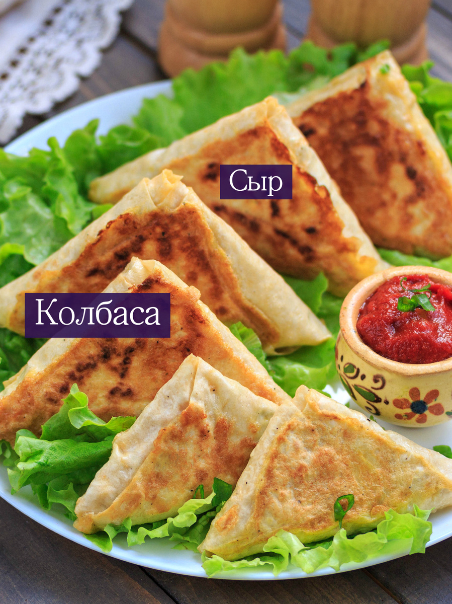 - Жареный лаваш с колбасой и сыром: Удобный и быстрый рецепт, который понравится многим. Всего лишь несколько минут на сковороде – и закуска готова!