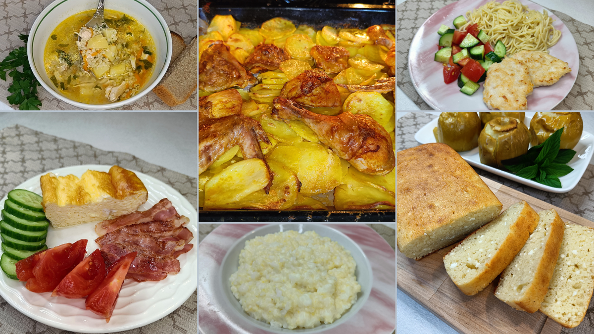 Каждый день обеспечивается простым картофельным супом с пшеном, сваренным на курином бульоне. И в качестве ужина — запеченные куриные бедра с картофелем. Эти блюда легко готовятся и позволяют избежать лишних трат.
