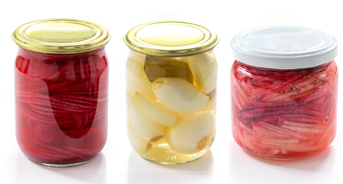 - Целый маринованный лук: украсит ваш стол и может быть нафарширован или запечен.