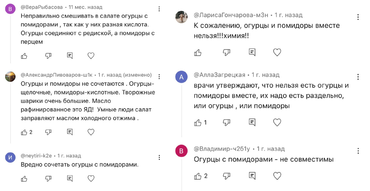 Существует миф о том, что смешивать огурцы и помидоры не стоит, ведь это может привести к расстройству пищеварения. Однако научные исследования не подтверждают эти опасения, и при отсутствии проблем с пищеварением, такое сочетание абсолютно безопасно.