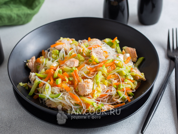 Фунчоза с рыбой и овощами