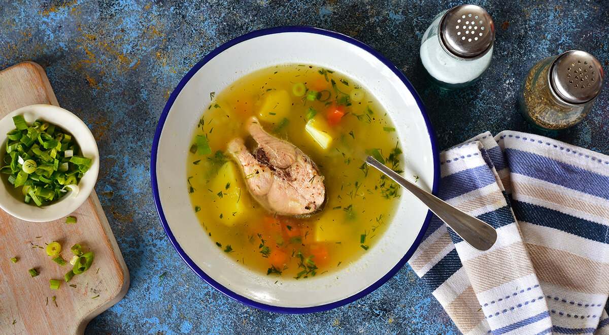 - Добавляйте рыбу и крупу по мере готовности бульона.