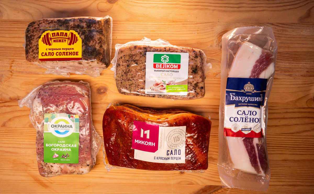 Добравшись до супермаркета, эксперты выбрали соленое сало пяти известных брендов: