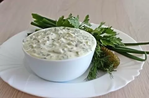 - Соус тартар со сметаной и маринованными огурцами: Главное в этом рецепте — свежие ингредиенты. Используйте 1 стакан сметаны, 2 мелко нарезанных маринованных огурца, 2 сваренных яйца и немного свежего укропа.