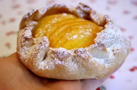 Разогрейте духовку до 200 градусов. Это подготовит ее для важного этапа — выпекания.В глубокой миске растереть сливочное масло с мукой и солью до состояния крошки — это будет основа вашего теста.Добавьте лимонную цедру, сахар и тщательно перемешайте.По одной столовой ложке постепенно добавляйте ликер и воду. Замесите тесто, завите его в пленку и отправьте в холодильник на час. Охлажденное тесто разделите на четыре части и раскатайте каждую в круг толщиной в 0,5 см.Персики нарежьте пополам и слегка надрежьте, чтобы сформировать визуально привлекательные вееры. В центр каждого круга теста поместите половинку персика, притяните края к центру и придайте форму галеты.Выложите галеты на противень, застеленный пергаментом. Сверху поместите небольшие кусочки масла и посыпьте сахаром по вкусу.Выпекайте около 20-25 минут или до золотистого цвета. Эти галеты обязательно порадуют глаз и не оставят равнодушным ваш желудок.Скорее всего, гости не устоят перед этим божественным сочетанием хрустящего теста и сладких персиков. Приятного аппетита!