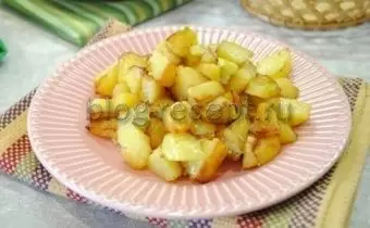 Накрыть сковороду крышкой и готовить на среднем огне. Время от времени стоит перемешивать картофель, чтобы он не пригорал. Как только картофель станет мягким и золотистым, блюдо готово.