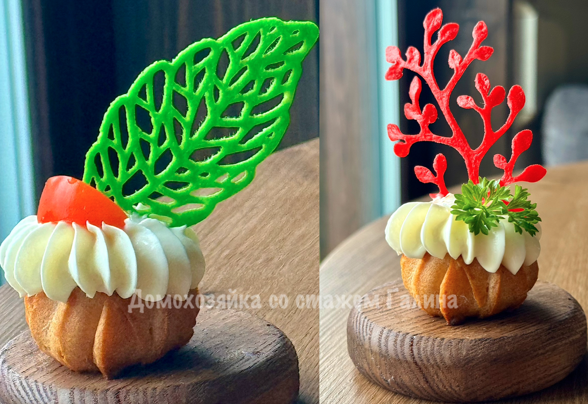 Полученные декорации идеально подойдут для украшения канапе, тарталеток, салатов, а также мясных и сырных тарелок. А если планируется использование этих элементов на тортах, достаточно добавить в тесто немного сахарной пудры и ванилина. Эта простая техника украсит любое блюдо и сделает его визуально привлекательнее.